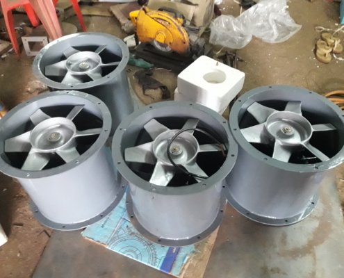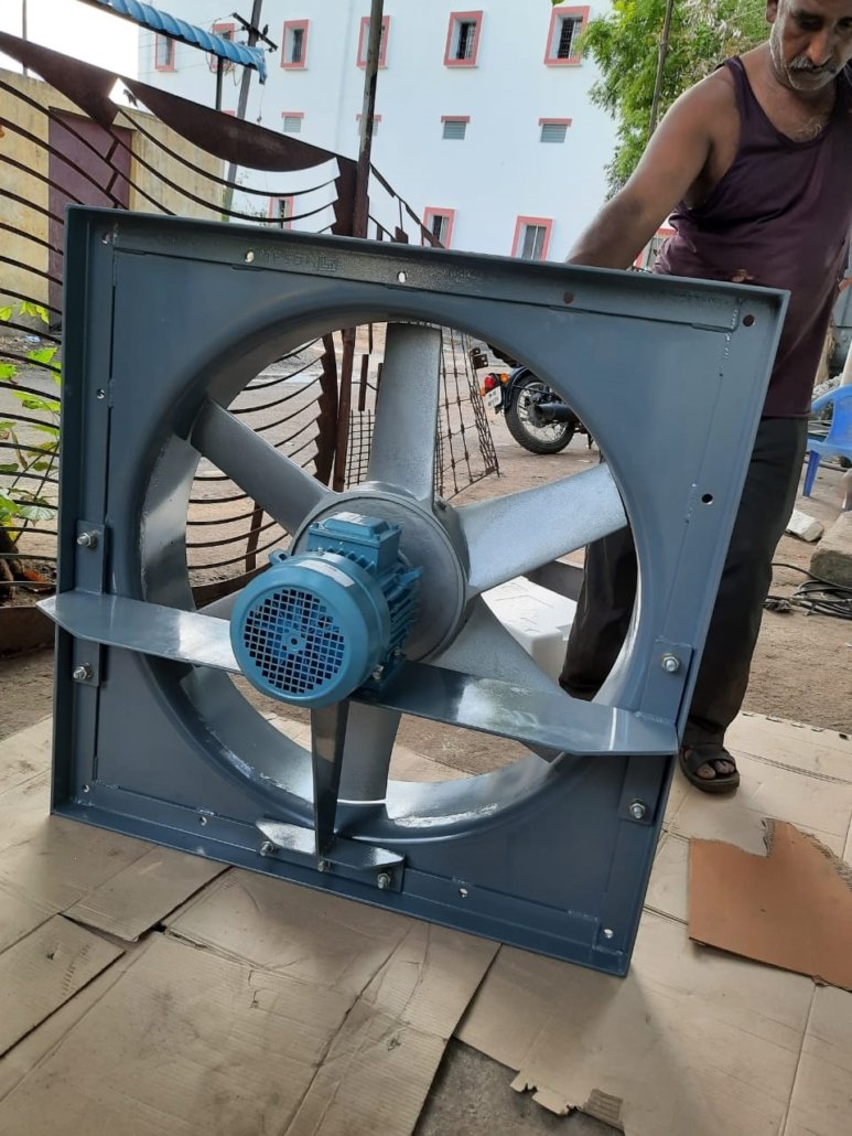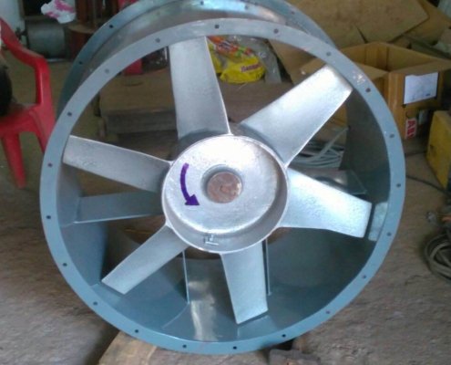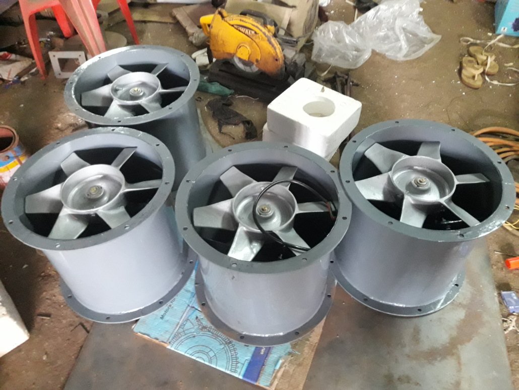 Pioneers in the industry, we offer Tubular Axial Fan, Tube Axial Fan, AC Axial Fan, Compact Axial Fan, Wall Axial Fan, and Wall Mounted Fresh Air Inline Fan from India. Axial fans discharge air parallel to the impeller’s axis and are preferred for high-volume, low-pressure applications. We manufacture axial fans with capacities ranging from 0.25 HP to 20 HP. Various types of axial fans, including tubular axial fans and wall-mounted axial fans, are available.